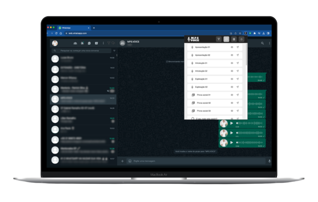 Além dos audios você pode configurar mensagens frequentes e envia-las com a mesma facilidade.